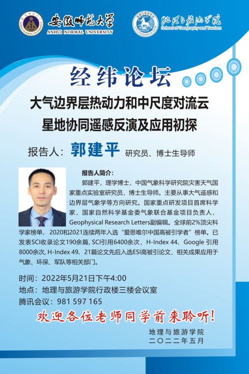 【学术预告】郭建平: 大气边界层热动力和中尺度对流云星地协同遥感反演及应用初探