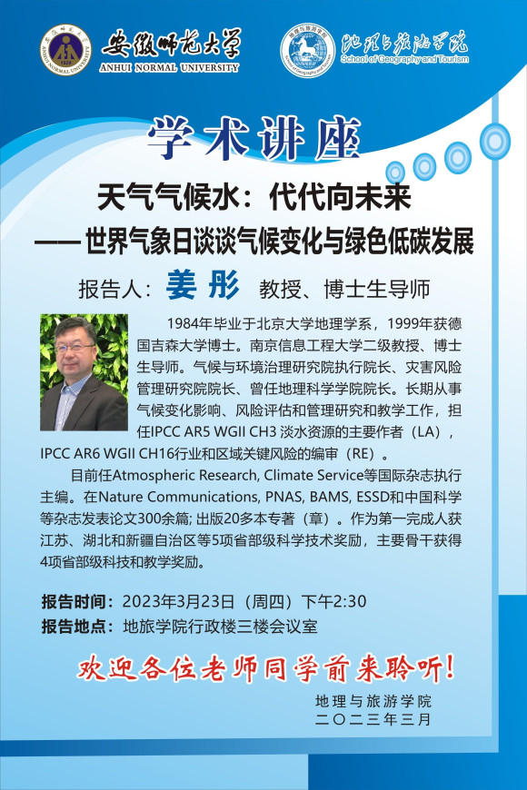 【学术预告】姜彤:天气气候水:代代向未来——世界气象日谈谈气候变化与绿色低碳发展