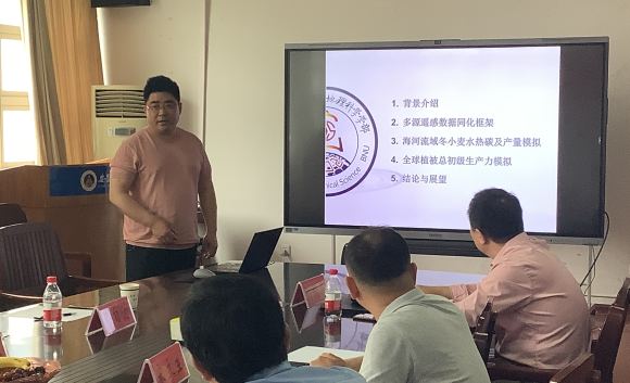 会上,刘绍民做了题为《黑河流域地表水热碳通量研究进展》的学术报告,让师生全面系统地了解了黑河流域水热碳通量的观测方法和时空特征。徐同仁做了题为《碳循环与农业遥感数据同化研究进展》的学术报告,通过多元遥感数据同化框架,模拟了海河流域冬小麦水热碳及产量和全球植被总初级生产力。徐自为做了题为《野外站网远程监控与数据管理系统v1.0》的学术报告,展示了黑河流域地表过程综合观测网,让与会师生看到了远在千里之外的黑河监测系统网络。马燕飞做了题为《全天候地表蒸散发遥感估算研究进展》的学术报告,通过多元数据集成,整合热红外遥感、被动微波遥感和再分析资料的优势,估算地表蒸散发。刘睿做了题为《城市建筑形态和蓝绿空间对城市热岛效应的缓解机制研究进展》的学术报告,通过地面观测、多源遥感数据和数值模拟的研究方法,探究蓝绿空间对缓解城市热岛效应的机制。宋立生做了题为《水热耦合双层地表蒸散发遥感模型研究进展》的学术报告,通过TSEB双源模型,准确拆分了土壤蒸发量和植被蒸腾量,提高了地表蒸散发遥感估算的精度。报告结束后,与会师生就相关问题展开了热烈讨论和交流。
