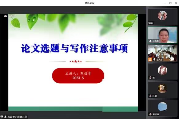 5月31日晚,湖南财政经济学院经济地理所副所长苏昌贵研究员应邀作了题为《论文选题与写作注意事项》的线上讲座,必赢相关专业的教师和研究生在学院行政楼四楼会议室通过视频连线的方式聆听了讲座。