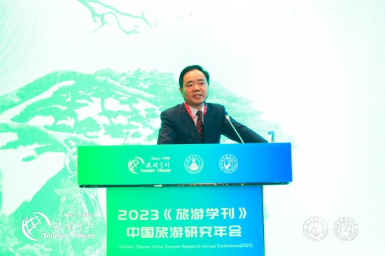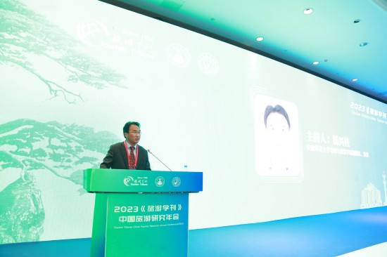 北京联合大学旅游学院常务副院长、《旅游学刊》主编严旭阳教授致欢迎辞。严旭阳教授表示,今年的年会是疫情过后,中国旅游学术界盛大的年会,感谢安徽师范大学和安徽省文化和旅游厅对旅游学刊年会的大力支持,并对安徽师范大学旅游管理专业成立30周年表示热烈祝贺。他以邓小平发表“中国旅游改革开放宣言”的“黄山谈话”为引言,指出旅游业的发展为中国式现代化开启崭新时代提供了力量源泉。在中国共产党的正确领导下,依托中国特色社会主义伟大实践的发展成就,涌现出一大批“把论文写在祖国大地上”的专家学者,取得了诸多具有创新性和特色的理论成果,充分体现了中国学人的责任和担当。在党的二十大精神指引下,立足中国特色社会主义新时代,中国旅游业进入了文旅深度融合发展的新阶段。中国旅游的学术研究在中华民族伟大复兴的时代背景下、在构建自主话语体系的时代要求下、在不忘本土以及吸收外来优秀研究成果的基础上,开启了面向未来的新篇章。