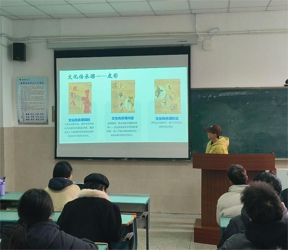 “传承传统文化,讲好中国故事”。杜韫君同学用好家乡丰富资源,以短视频形式分享自己家乡的特色文化与民风民俗;郭宇飞同学拍摄“耍鱼灯”活动照片,带领同学们领略鱼灯之美;王薇同学制作海报向同学们宣传皮影戏相关知识。他们深挖家乡传统文化与年味年俗,努力讲好中国故事,争做中华优秀传统文化的传播者。