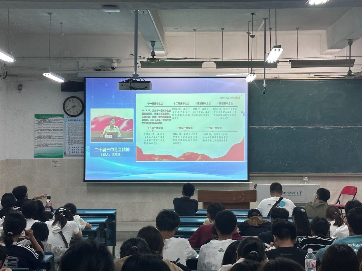 会上,沈燕培从三个角度为同学们解读二十届三中全会。带领同学们深刻认识此次全会重要意义,深入学习全会精神,贯彻落实党的二十届三中全会精神的青春担当。沈燕培指出党的二十届三中全会是在以中国式现代化全面推进强国建设、民族复兴伟业的关键时期举行的一次十分重要的会议,具有重大而深远的意义。全会为全面建设社会主义现代化国家、全面推进中华民族伟大复兴注入了强大动力。全会强调了科技创新的关键作用,沈燕培也激励各位同学积极投身科技创新领域,提升国家竞争力,推动高质量发展。同时,全会提出的各项重要改革举措进一步指明了全面深化改革的目标和方向,他也鼓励大家积极参与社会实践活动,增强社会责任感。