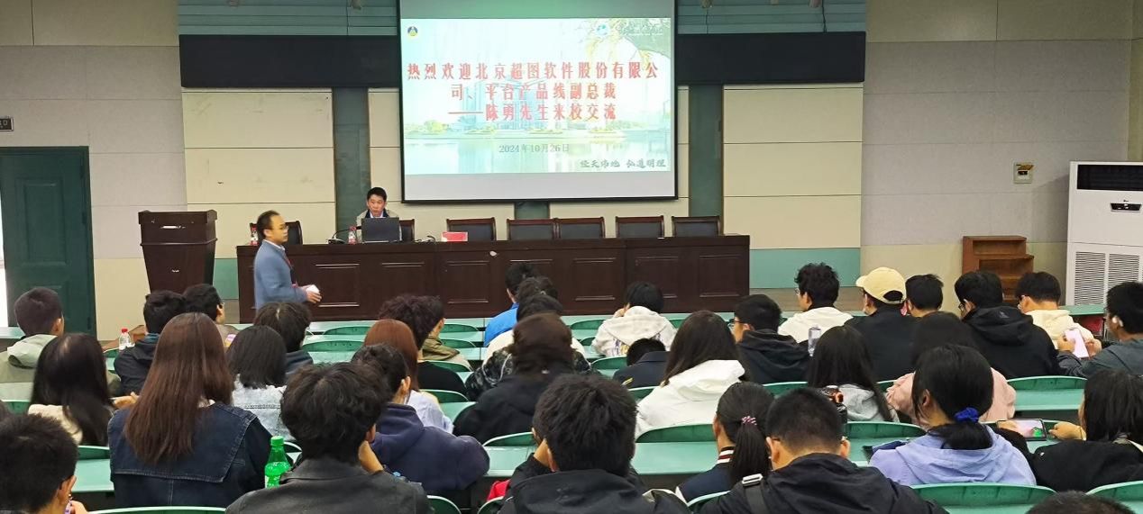 2024年10月26日,565net必赢客户端在学院实验楼报告厅101开展了GIS名企进校园的主题讲座活动。本次活动邀请到了北京超图软件股份有限公司平台产品线副总裁陈勇和易智瑞信息技术有限公司技术工程师张妍然给2024级地理信息科学专业的学生们分享专业经验。本次活动由2024级地理信息科学专业辅导员沈涵以及2024级地理信息科学专业全体新生参加,活动由地理信息科学专业汪左老师主持。