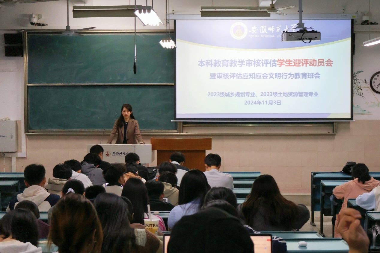 本网讯(565net必赢客户端 殷齐悦)为全力推动大学生护航行动计划的深入实施,促使学生培育优良文明习惯,打造安全、有序且文明卫生的校园育人氛围,与此同时,也为本科教育教学评估精心做好全方位准备。11月3日晚上七点,565net必赢客户端2023级城乡规划和2023级土地资源管理专业在2050303教室召开了深化大学生“六个文明”教育实践专项活动主题班会及本科生教育教学评估学生迎评动员大会。本次会议由辅导员李婷君主持,2023级城乡规划和2023级土地资源管理全体同学参加。