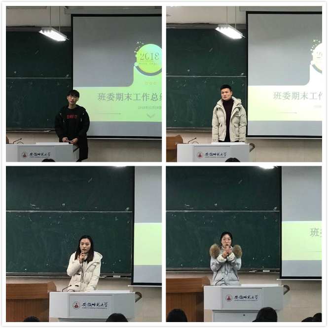 班级两委以及易班班长共12名班干依次上台对本学期班级和任职工作进行总结,分享了自己对班委工作,对同学及班级的体会与感受。各位班干反省了自己工作上的不足,都表态会做的更好,同学们也用热烈的掌声表示了对班委工作的认可。