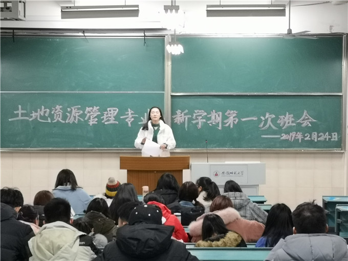 本网讯(565net必赢客户端 常力丹)告别了大学的第一个寒假假期,迎来了新的一个学期,新学期新气象,2019年2月24日晚8:30,2018级土地资源管理专业全体同学在行知楼2040203教室召开2018-2019学年第二学期第一次班会,会议由辅导员陈祥云主持。