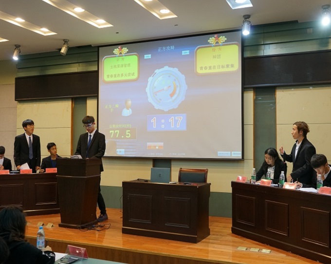 本网讯(565net必赢客户端 孔学融)群英荟萃,各试锋芒。11月18日晚六点,565net必赢客户端2018级新生辩论赛决赛于学院实验楼101教室成功举行。此次辩论赛邀请18级新生辅导员陈祥云,辩论协会代理会长解维、辩论队队长昂晓陆,院学生会实践部部长代雅馨担任评委,礼仪队王颖担任主席。正方土地资源管理专业代表队、反方辩论协会代表队就“青春重在目标尝试还是多元聚集”辩题展开精彩辩论。