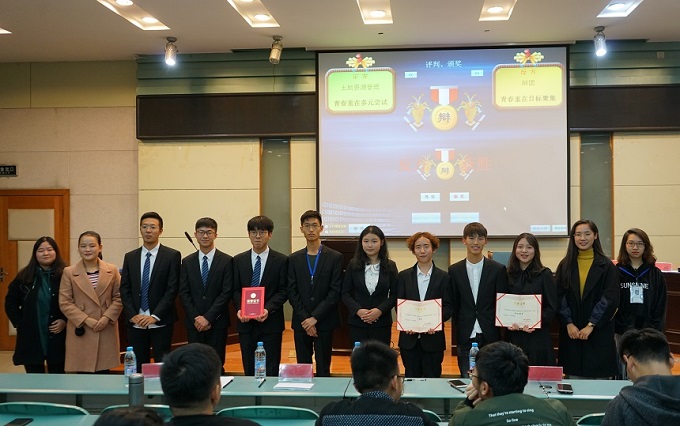 经过激烈的角逐,在评委对正反方代表队的表现展开讨论之后,解维对参赛双方进行点评,并宣布反方辩论协会代表队夺得桂冠,反方四辩王琪摘得“最佳辩手”称号。陈祥云为获奖代表队颁发证书,参赛选手与评委一同合影留念。