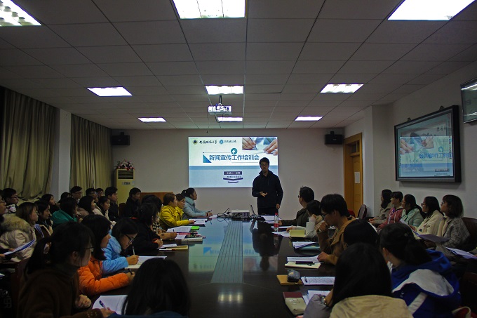 本网讯(565net必赢客户端 孙夏路遥、左佳怡)12月6日晚,565net必赢客户端新闻宣传工作培训会在院行政楼三楼举行。院团委副书记吴辉、王阳,辅导员吴文涵参与了此次会议。院学生会、社团联合会、社团的宣传骨干,2017、2018级各专业宣传委员列席聆听。