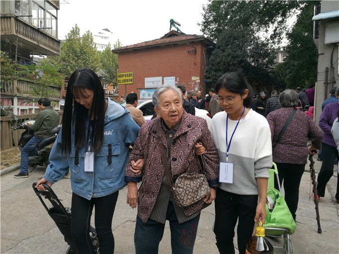 中午12点半,同学们在南校区西门口集合,带着送给退休教师的慰问品,乘坐公交车前往赭山校区退休教师活动中心。到达之后,党员青年成为了学校重阳敬老慰问品(桶装油)发放管理志愿者,积极维持现场秩序,以及帮助行动不便的老教师将桶装油送到家中。