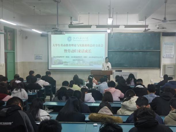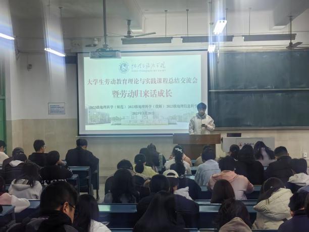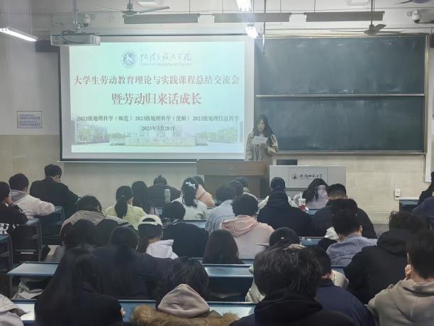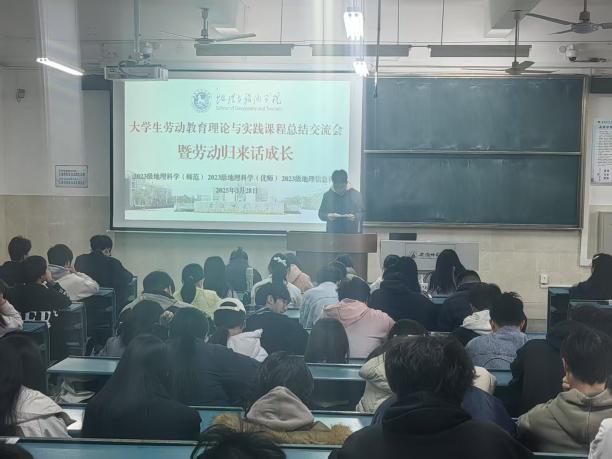 (本稿讯 唐丹丹)2025年3月28日下午,行知楼2010101教室,成功举办565net必赢客户端 “大学生劳动教育理论与实践课程 —— 暨劳动归来话成长” 劳动周总结交流会。本次活动由学院辅导员齐小学和吴楠主持,2023 级地理科学(师范)、地理科学(优师)及地理信息科学专业全体同学参与,会议旨在总结本周的劳动周实践成果。