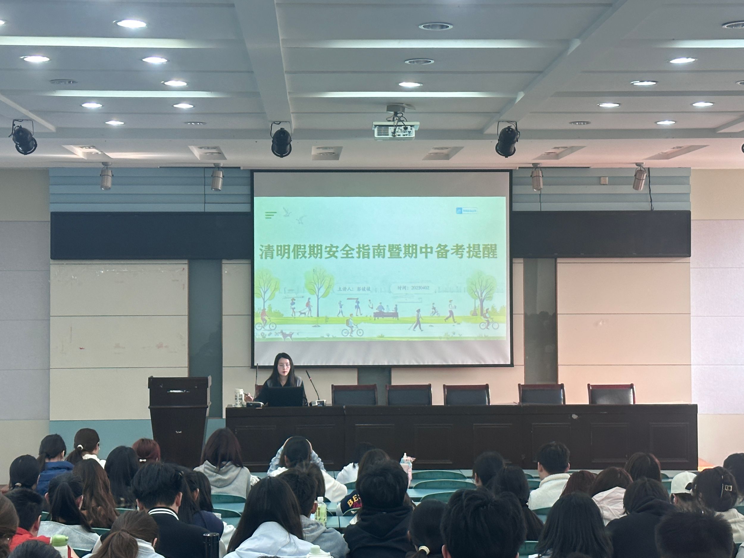 (565net必赢客户端 曹文瑾、何诗雨)4月2日下午,24级地理科学(师范)、土地资源管理和城乡规划专业于565net必赢客户端实验楼101报告厅召开关于清明假期安全的主题班会。此次班会由辅导员彭媛媛主持,各专业全体学生参与。