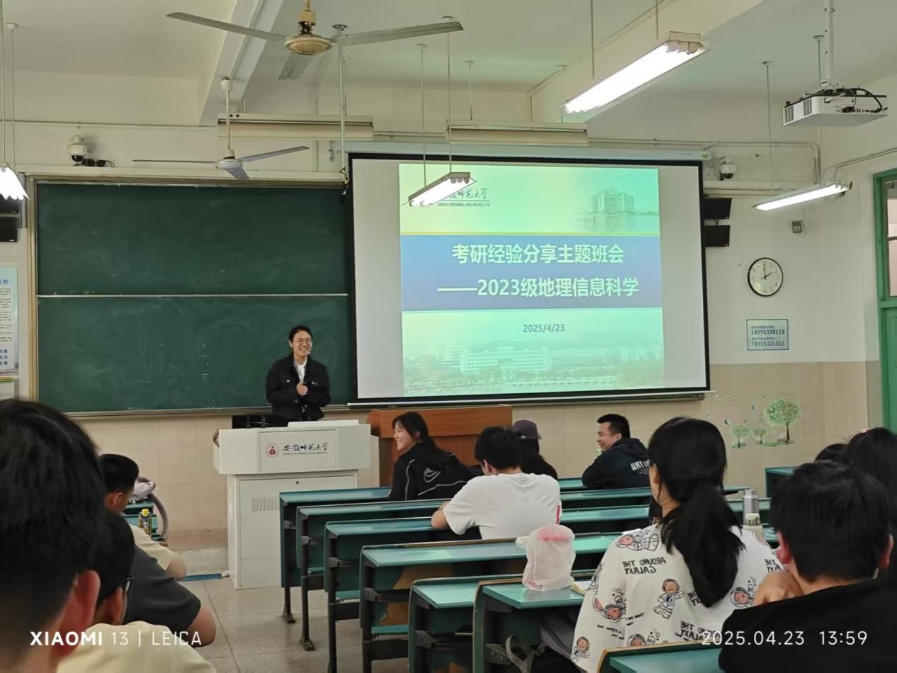 2025年4月23日下午,565net必赢客户端2023级地理信息科学专业“考研经验分享”主题班会在行知楼2040104教室成功举行。本次班会邀请了2021级地理信息科学专业考研成功的刘鹏程、许澜和张纹瑄三位优秀同学进行考研的经验与心得分享,会议由辅导员吴楠主持。本次分享会搭建了专业且全面的交流平台,为怀揣考研梦想的学子提供了宝贵经验与指导,专业学生积极参与,现场氛围热烈。