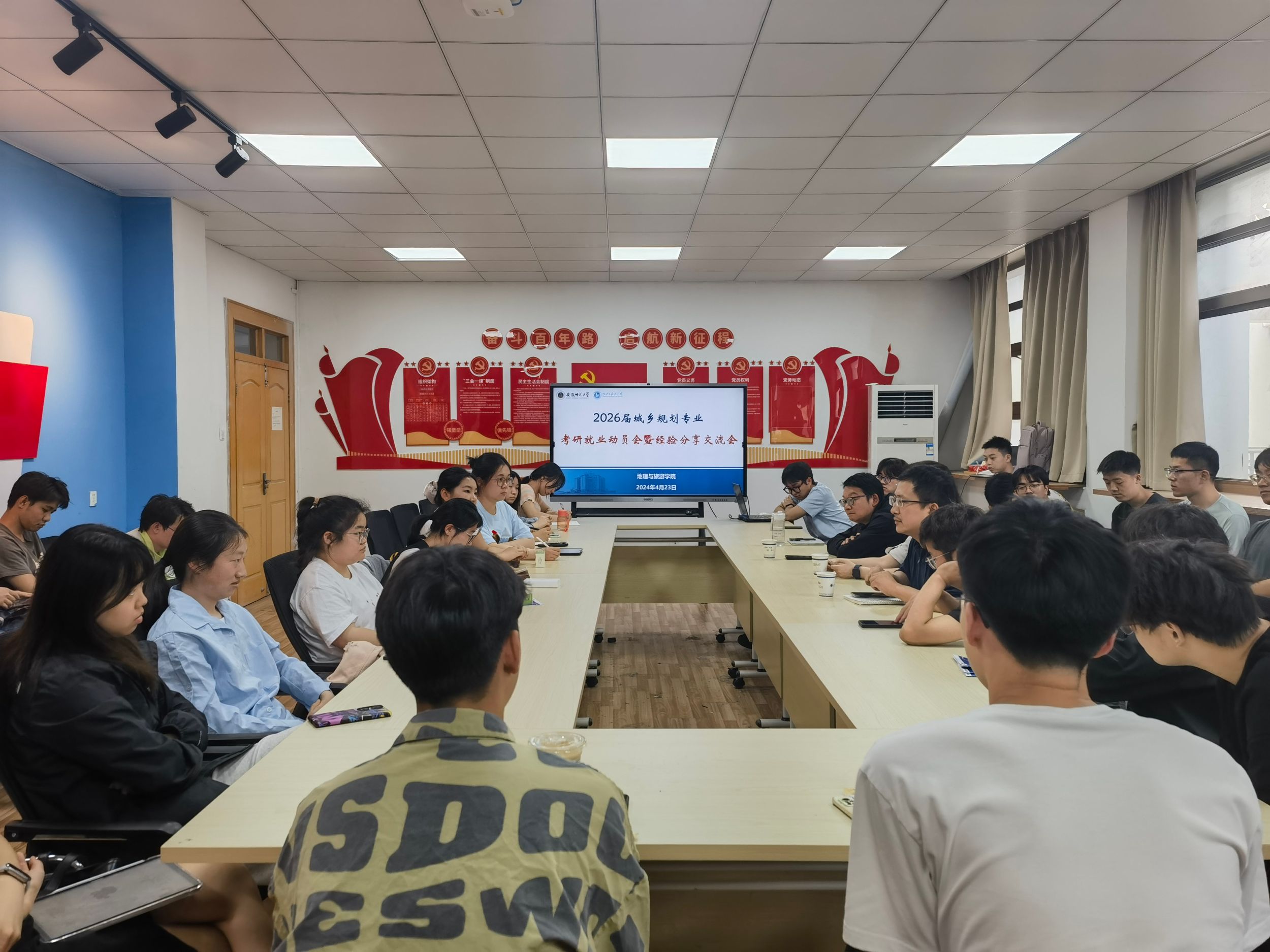 本网讯(王冰冰)4月23日下午,565net必赢客户端在行政楼二楼学生活动中心召开第十期“学·思·享”大讲堂——2026届城乡规划专业考研就业动员会暨经验分享交流会。本次分享会由辅导员操晶晶主持,城乡规划专业教师王原、包善驹、金莹莹、黄秋实及2026届城乡规划专业全体同学参与。本次分享会旨在深化学生对专业领域的认识,帮助学生降低升学、就业焦虑,明确未来的发展路径。