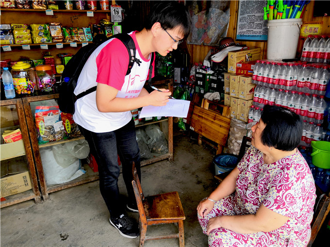 经过短暂的休整,团队队员们立即对天堂寨周边地区进行生态环境调研工作。此次调研,团队采取分组划片发放调查问卷的方式进行,各组人员在明确好调查区域和任务之后立即展开调研工作。队员们细致地分发问卷,广泛地收集当地居民的回答。