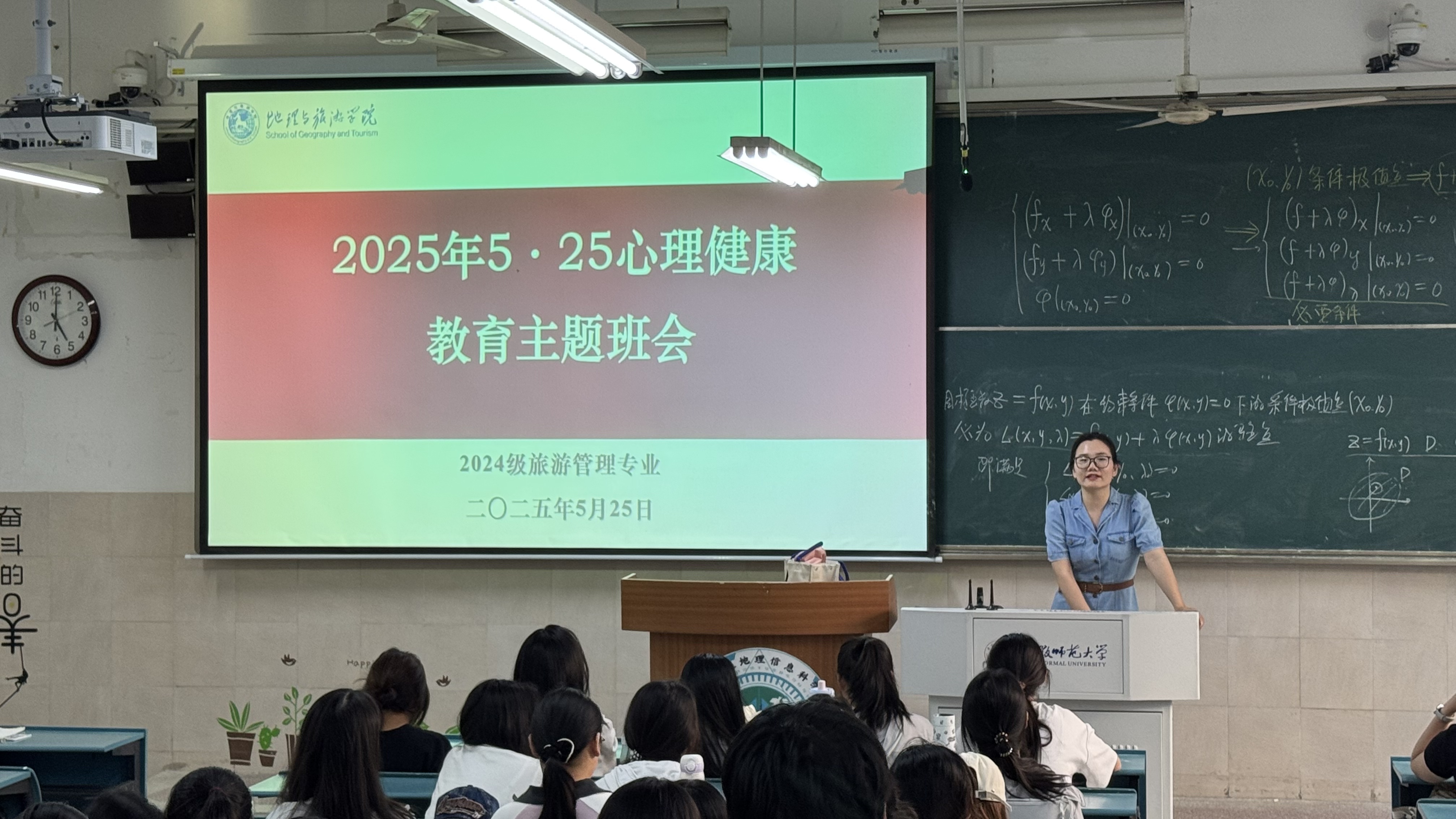 2025年5月25日下午,565net必赢客户端2024级旅游管理专业全体同学在行知楼2040103教室召开了“5·25心理健康教育”主题班会,本次班会由辅导员韦银艳老师主持。