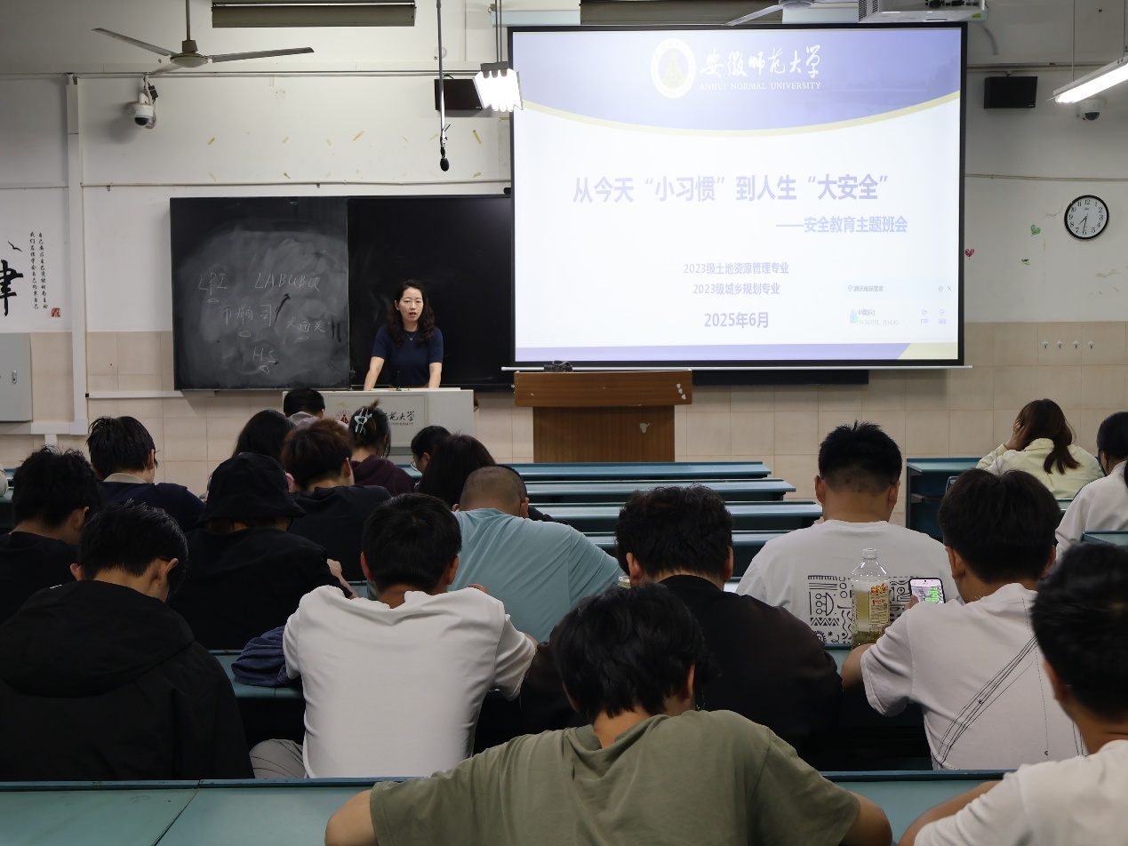 (565net必赢客户端 殷齐悦)为积极落实565net必赢客户端“大学生护航”行动计划,进一步增强学生安全意识,提升同学们的安全防范能力,2025年6月2日晚七点三十分,2023级土地资源管理、城乡规划专业在行知楼2050404召开安全教育主题班会,2023级土地资源管理、城乡规划专业全体同学参加。班会由辅导员李婷君主持。