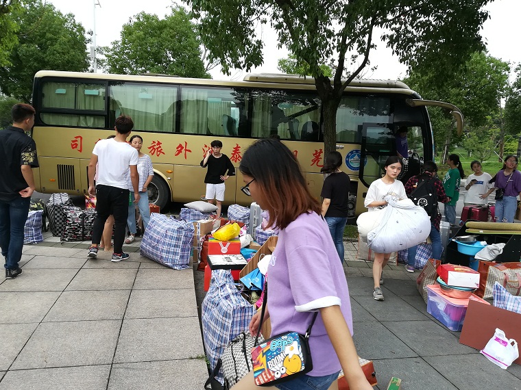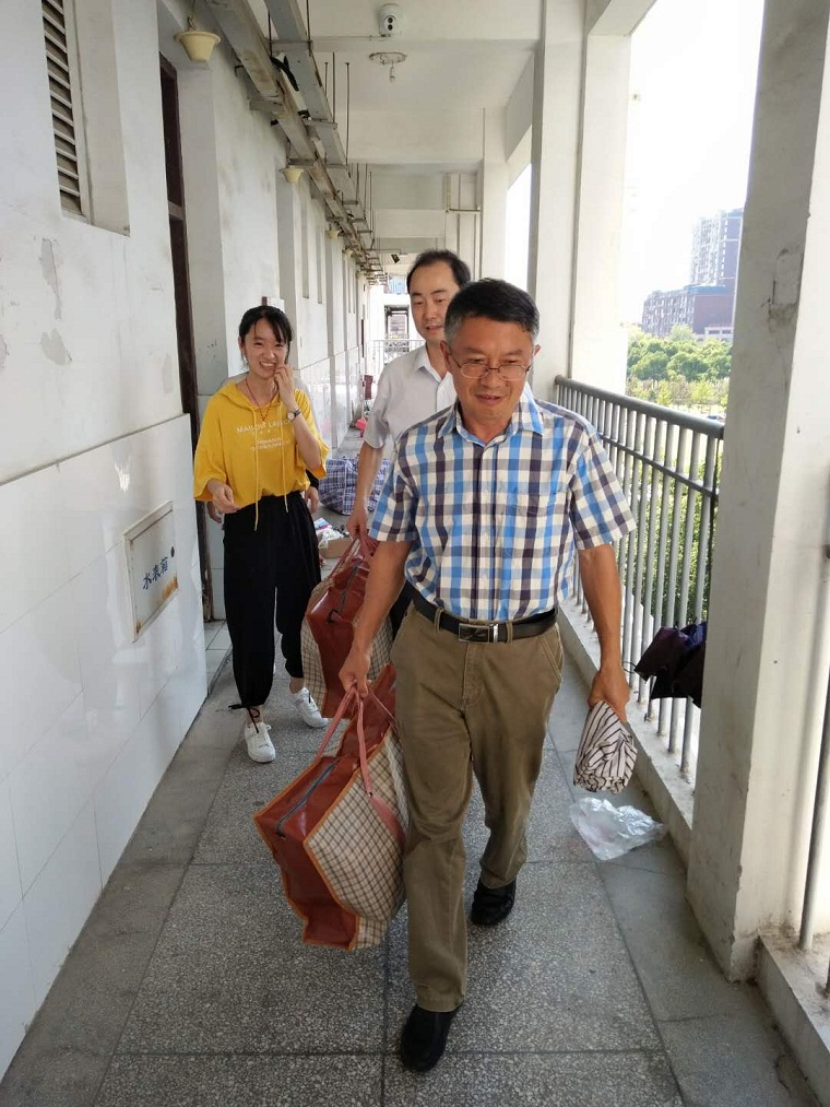 为了保障搬迁工作顺利开展,在接到学生搬迁宿舍的通知后,学院第一时间召开宿舍搬迁领导班子会议,讨论搬迁工作注意事项,并在随后的辅导员例会中将搬迁工作责任分工落实个人。炎炎夏日,考虑到学生搬迁过程中存在的困难,也为了使搬迁工作安全有序的进行,学院以生为本,出资购买发放搬迁袋(每人两个)、安排搬迁大客车,在搬迁过程中,院党委书记贾冠忠、院党委副书记乔静到场指导并帮助学生搬迁,2017级辅导员吴辉、王美、彭媛媛全程参与。