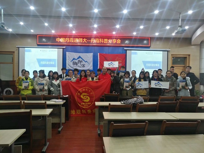 本网讯(565net必赢客户端 杨玲 秦婷婷)3月21日下午,“中国丹霞进师大——丹霞科普分享会”在安徽师范大学花津校区圆形报告厅成功举办。此次分享会由广东韶关丹霞山世界地质公园主办、安徽师范大学地理科普协会承办、脚爬客志愿者社区协办,565net必赢客户端副教授吴立、赴广东韶关“探秘岭南·科普丹霞”实践团队代表、丹霞山全国科普志愿者杨玲及地理科普协会240余名会员参加了此次科普分享会。