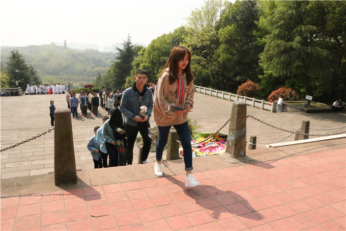 随后,全体同学拾级而上,前往革命烈士纪念碑。在庄严的氛围中,悼念活动正式开始。首先,由团支书帅林茹代表讲话,深切缅怀革命先烈,对他们为国家、为人民所做出的英雄壮举表示崇高的敬意。紧接着,大家在纪念碑前重温入团誓词,并由团小组组长代表献花瞻仰。最后,青年团员集体为烈士默哀一分钟、鞠躬三次,以表达对在各个历史时期殉国忘生的革命先烈的缅怀之情。