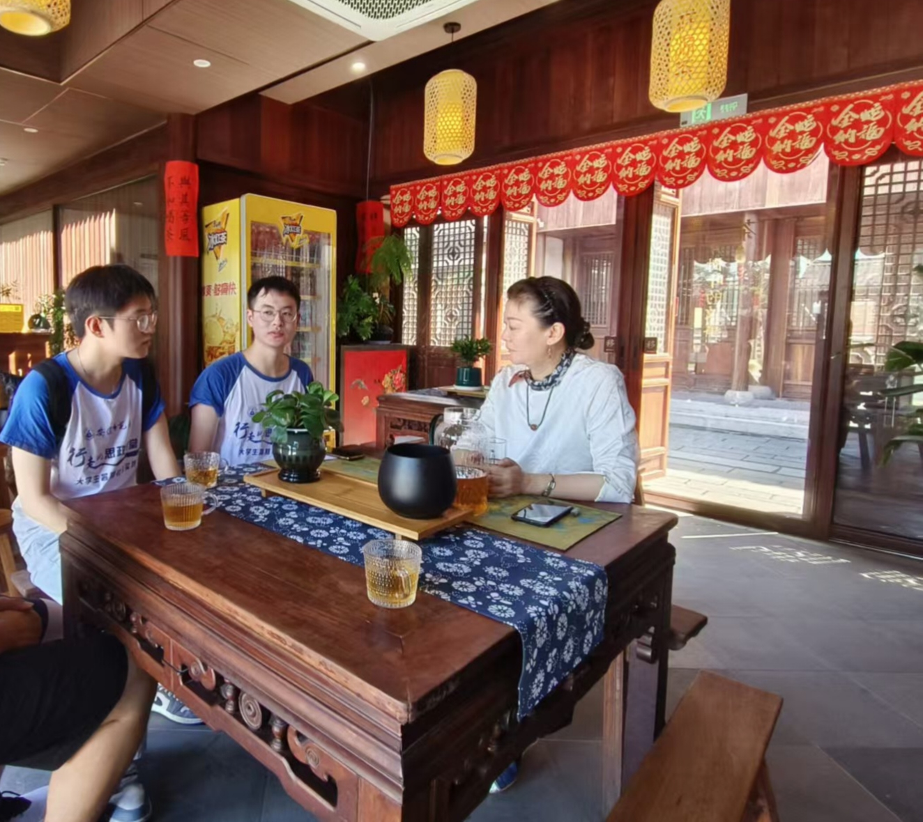 历史文化街区河沥溪街道,宛如一颗镶嵌在安徽宁国的灿烂宝石,吸引着众多居民和游客们打卡观光。7月1日,安徽师范大学565net必赢客户端赴宣城探究文旅融合驱动下河沥溪街道活化机制调研本科实践团到达当地著名的河沥溪街道祥源茶馆,向茶馆老板了解了河沥溪街道旅游发展的当前现状和未来潜力。