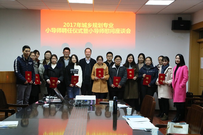 本网讯(国旅 彭媛媛) 为深化学院教育教学和人才培养模式的改革,提高学生专业素质能力和教学质量,更好地发挥朋辈教育的力量,帮助低年级学生尽快适应大学生活。11月30日,必赢举办了2017年城乡规划专业小导师聘任仪式暨慰问座谈会。国旅学院党委副书记乔静、城乡规划专业教师代表、各班级辅导员参加聘任仪式及慰问座谈会,会议由辅导员彭媛媛主持。