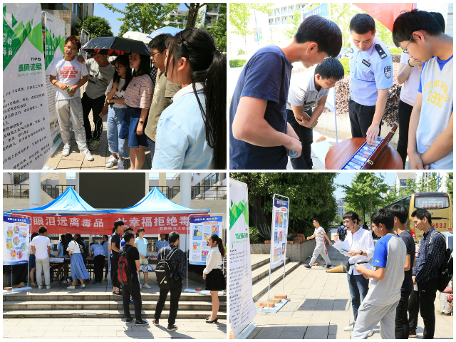 本次宣讲共分为三个部分。辩论协会宣讲人员邀请来往师生进行禁毒知识有奖问答,加深大家对吸毒危害性的认识与理解。辩论协会宣讲人员借助展板进行毒品知识讲解,并邀请市禁毒办人员向同学们展示毒品样品,介绍相关知识,进一步加深大家对禁毒工作和毒品危害的认识。最后,同学们纷纷在主题横幅上签名并发送微博,向身边的亲友普及毒品的危害和禁毒的必要性。校团委书记梁燕,校团委副书记张园园,国旅学院党委副书记乔静,辅导员吴辉、吴燕莅临现场指导并参与了活动。