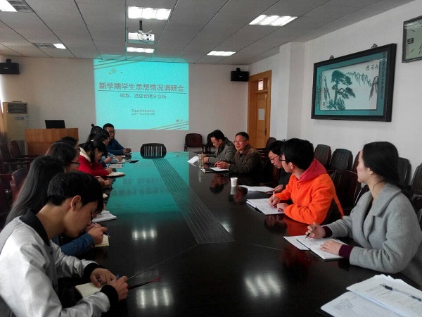 据悉,国旅学院一直以来长期重视学生思想调研工作,开学起就已召开专门会议布置新学期学生思想情况调研工作。通过发挥辅导员、学生会、优秀学生代表、班级学生班干等多方联动作用,以寝室民主生活会,网络互动交流,个别谈心谈话、访谈座谈、书面征集等多种形式收集学生思想、学习、生活各方面的看法与意见,真正做到深入学生中,及时了解学生思想状况及舆情动态。