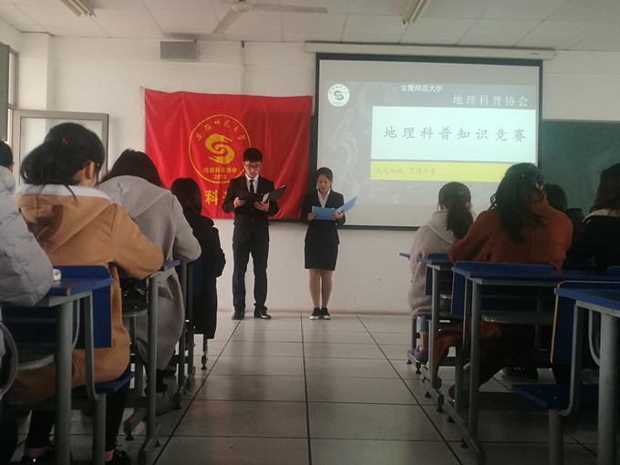 本网讯(国旅学院 赵 将 王青芳)在第57个世界气象日(3月23日)到来之际,为了传播气象科学和地理科学知识,帮助同学形成关注气象、气候和自然环境的观念意识。2017年3月18日,国旅学院地理科普协会在国旅实验楼202教室举办了地理科普和气象知识竞赛决赛。地理科普协会理事和协会成员近70人在现场观看比赛。