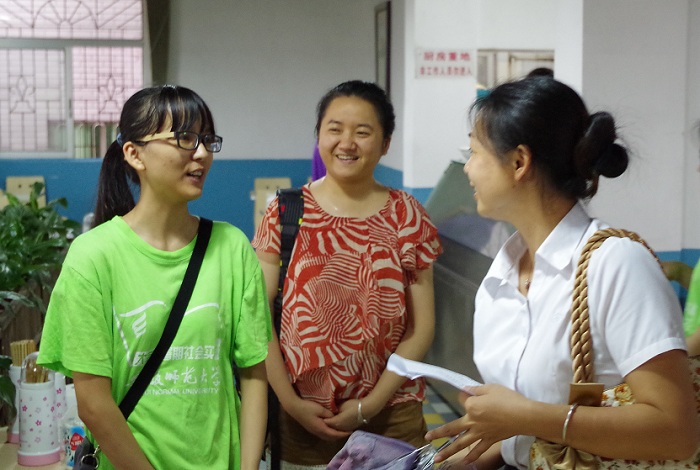 一方水土,一方文化,丹霞的水土养成了丹霞人民淳朴的民情。经过简单的休整之后,团队与丹霞山管委会取得联系,并与管委会科长陈女士、丹霞山博物馆馆长顾丽娟女士共进晚餐。几样家常菜,一碗米饭,是岭南的饮食风情,是浓浓的淳朴民情。“我对你们的到来表示欢迎,现在很多学校的大学生只会‘纸上谈兵’,像你们安师大这样前来实地勘察,追求书本理论知识跟实践相结合的学生不多了,希望你们在丹霞山的这几天能学到有用的知识。”顾馆长如是说。外面的细雨纷飞,餐厅内欢声笑语一片。