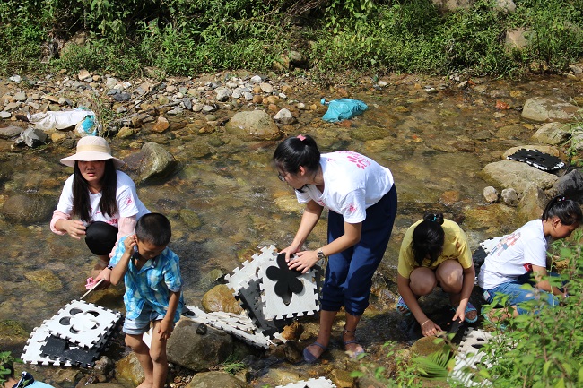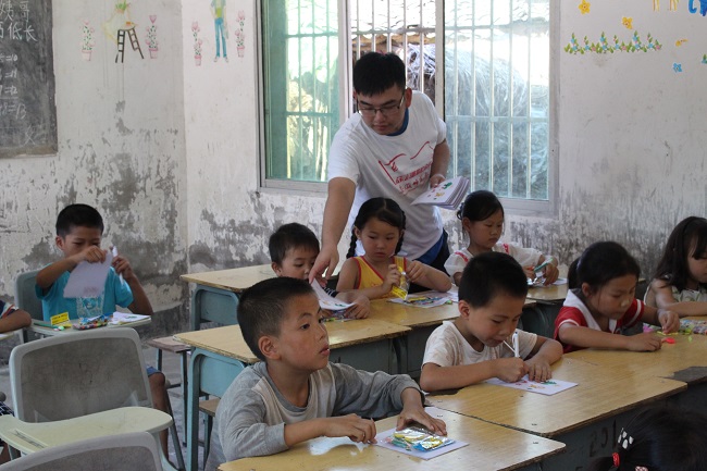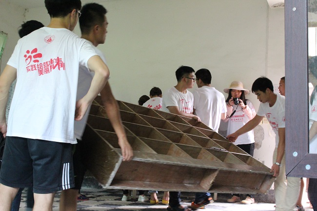 颠簸了九曲十八弯的山路之后,队员们终于抵达保利时希望小学。小学所在的尖山村正处贫穷落后的深山区,只有几十户人家,许多房子还保留着上世纪80年代的面貌。“推开住宿房间的门我真的吓了一跳。”队员夏春晖来自重庆,当看到屋内潮湿,墙壁斑驳,蚊虫成群,蛛丝勾连,积尘遍布的支教环境时,他也不由感慨山区的条件的艰苦。队员们刚放下行李就停蹄地开始进行清洁整理的工作,衣服几乎全部湿透,头发也蒙上了积尘。令队员们感动的是当地的一些学生纷纷主动跑来帮忙。山里的孩子话不多,但即使是五六岁的小孩儿干起活来也都非常熟练、利落。队员们分工合理,齐心协力,清扫工作很快顺利完成,正式教学活动前的准备工作也开始有条不紊地展开。