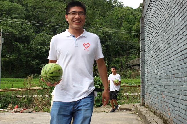 此次支教之行也得到了当地领导老师的大力支持。从达州市区前往保利时希望小学近90公里的山路,全部由当地老师们车辆接送。7日早上,队员们稍事休整之后,随即整装出发。中途路经一片瓜田时,即使队员们再三拒绝,金鸡乡中心校的王灏校长仍执意为队员们购买西瓜,“山上条件苦,买物资也不方便,我们也是能够帮助你们一点是一点。”
