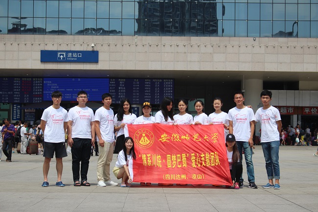 本网讯(国旅学院 刘冠琪、刘闫/文 夏春晖/图)川水七月歌蜀景,景融九载支教情。2016年7月6日,安徽师范大学“情系川皖,圆梦巴蜀”爱心支教团队奔赴四川省达州市大竹县尖山村保利时希望小学,开展为期15天的支教活动。这已是此支队伍第九次赴川支教。