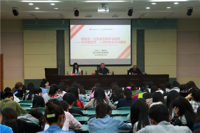 本网讯(国旅学院)5月21日下午,校关工委常务副主任、原校党委副书记袁起河在国旅实验楼101报告厅作了题为“跟党走,立志成为青年马克思”的报告会。国旅学院200余名学生党员、入党积极分子和团员青年参加了此次报告会。报告会由2015级旅游管理专业辅导员吴燕主持。