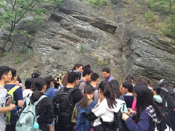在为期七天的巢湖实习中,全体同学在实习组老师的带领下,风雨无阻,携手共济。59日,初到巢湖市时,细雨蒙蒙,全体学生冒着雨踏上了本次巢湖实习的征途。实习期间,老师们手把手地交同学们测量岩石产状,分析断层成因。为采集标本化石,同学们迎难而上,大雨阻不住渴求知识的双眼,崎岖挡不了奋发向上的决心。在这短短的七天里,同学们划过紫薇洞的地下暗河、征服了险峻的麒麟山脉、饮上了“幸福万万年”的幸福泉。