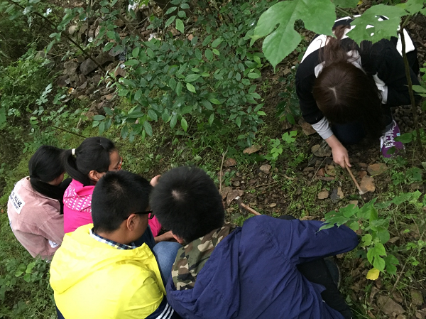 杨立辉老师讲解测量产状时,同学们便积极拿出罗盘实测倾向和倾角,当程先富老师讲解岩石的构造和名称时,同学们便拿出纸笔,认真做好记录工作。实习过程中,15地科团小组内部分工明确,和睦融洽,在实习中收获了经验和知识,增强了班级凝聚力,增进了师生之间、同学之间的感情。