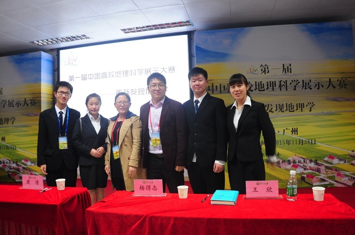 本网讯(国旅学院 程辰)2015年11月27-29日,由教育部高等学校地理科学类专业教学指导委员会、中国地理学会、中山大学地理科学与规划学院联合主办的“第一届中国高校地理科学展示大赛”总决赛在广州中山大学隆重举行。本次大赛吸引北京大学、南京大学、中山大学、兰州大学、中国人民公安大学、南京师范大学、安徽师范大学等60多所高校代表队参加。教育部高等学校地理科学类专业教学指导委员会郑祥民教授、中国地理学会秘书长张国友研究员、美国俄亥俄州立大学地理系主任隋殿志教授等担任大赛评委并出席颁奖典礼。