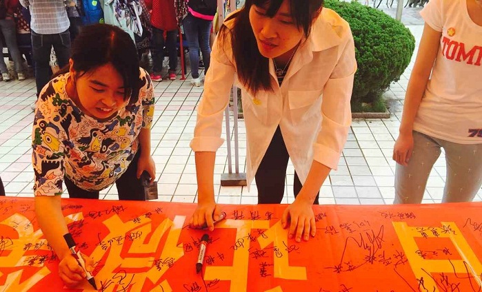活动当天,在花津校区一食堂广场,由200余张精心挑选的微笑照片组成的微笑墙格外引人注目,不少路过的师生都停下脚步好奇地围观。“哎?这不是你嘛,笑得真开心!”现场的李同学在照片墙上发现了同行的另一位同学的照片,兴奋地拍下来发给小伙伴们共享。与此同时,校礼仪队队员们化身微笑使者,身着红色旗袍,笑靥如花,向现场师生展示美丽笑容的定义。同学们还纷纷在“世界微笑日,让微笑温暖你我的横幅上写下自己的微笑宣言,为“幸福师大”加油助力。