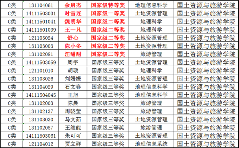本网讯(国旅学院 王美)日前,全国大学生英语竞赛组委会公布2015年获奖名单国旅学子在本次全国大学生英语竞赛中发挥出色取得佳绩,共有18名学生获得国家级奖项,其中13级地理信息科学专业余启杰同学获得国家级特等奖,14级土地资源管理专业时雪连同学获得国家级一等奖,另有5名同学获得国家级二等奖,11名同学获得国家级三等奖,此外还有26名学生分别获得校级一二三等奖。