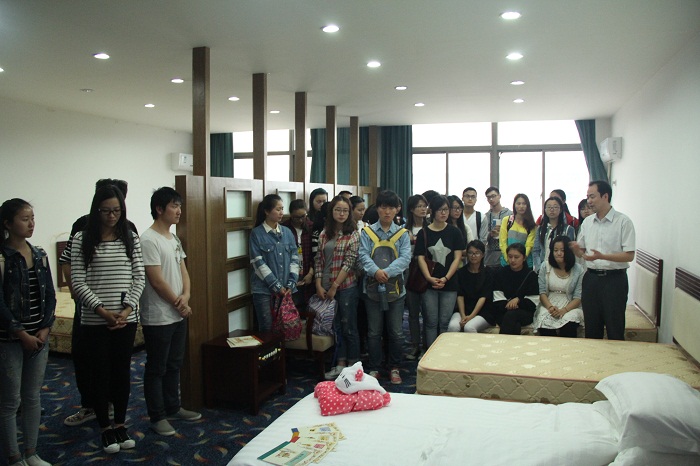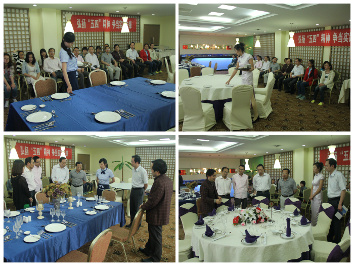 座谈会后,即将代表我校参加全国第七届旅游院校服务技能(饭店服务)大赛的四位同学,为现场的领导老师和同学奉献了一场以“饭店实操技能服务”为主题的专业技能展演,共分为中餐宴会摆台、西餐宴会摆台、中式铺床和鸡尾酒调制等四个部分。同学们扎实精湛的专业技能和新颖独特的创意设计赢得了在场老师同学们的阵阵掌声,充分展示了该院应用型专业学生良好的专业素养及实践创新能力。