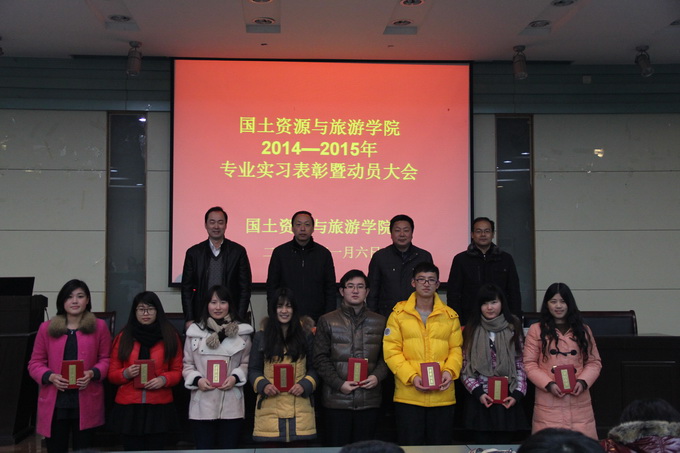 吴春雷书记首先宣布了关于11级先进实习小组、优秀个人、优秀案例的表彰决定,上海花园酒店实习小组、宁波华侨豪生酒店等实习小组获得先进集体的殊荣,另有李亮亮等十多位同学荣膺优秀个人、优秀实习案例的称号。随后11级旅游管理专业的徐晓露同学作为优秀实习生代表进行了发言,她用亲身经历鼓励学弟学妹们勇于吃苦、持之以恒、善始善终。接下来,副院长卢松老师发表了动员讲话,从知专业、重实践、避错误、强意识、提素质五个方面对同学们提出了鼓励和要求。他强调指出,应用型专业最好的实践平台就在技能操作岗位,同学们一定要重视企业活动,用学习的态度去弥补理论知识的不足,初步培养理论应用能力,练就技术操作本领。12级地理信息科学专业的赵星宇同学也代表全体实习生发表了感言。他首先向关心、指导同学们的学院领导及教师致以谢意,并承诺在实习期间遵守实习纪律,抓住实习机遇,树立良好形象。