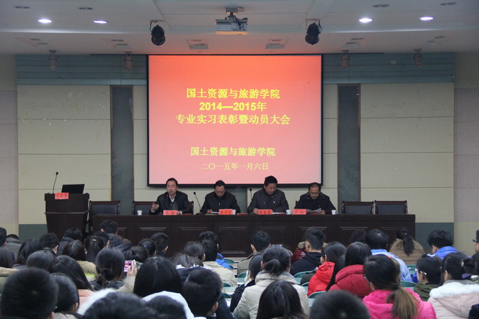 为推进以理论引导为主、实践教学为辅的定向人才培养工程,帮助2012级学生更好地迎接专业实习,1月6日下午16:00,必赢在实验楼101教室举行了2014—2015学年专业实习表彰暨动员大会,大会由院党委副书记乔静主持,院党委书记吴春雷、院长焦华富、副院长卢松、各专业实习指导教师、辅导员老师、11级优秀实习生代表和12级全体同学参加了此次动员大会。