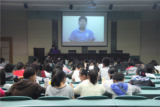 接着,杨哲学长为同学们播放了一个研究生支教团去甘肃偏远山区灵台二中支教期间拍摄整理的一个视频——“青春西望”,看到山区孩子在他一年的带领下,由起先的不接受到后来分别时的不舍;由最初的上学只是混日子到后来意识到读书改变命运而发奋学习;由第一次月考平均分超出同类班4分到最后一次月考超出40多分,在场的所有听众听后均感慨支教老师对山区孩子的影响之大。当他询问在场的同学们有没有人愿意去支教时,大部分同学举手表示愿意。