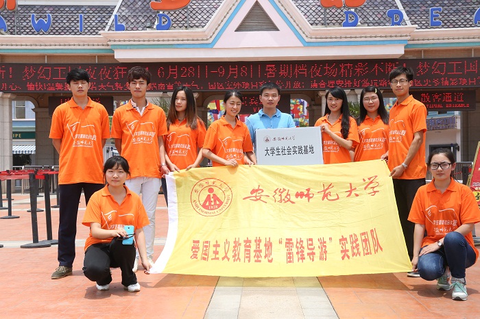 在芜湖实践的3天始终伴着淅沥的小雨,但队员们却热情不减。“雷锋导游”梦一队在方特梦幻王国园区开展志愿服务工作包括为游客办理相关业务,提供开水与手机充电服务,发放方特宣传手册,闸口检票等。他们耐心友好,认真负责,赢得了游客与园区管理人员的一致认可。“雷锋导游”梦二队在芜湖王稼祥纪念馆与历社学院联合开展了志愿导游和知识宣传活动,与芜湖海事局等领导同志共度“七一”建党节;并与数计学院在腾达教育机构合作开展“雷锋导游进校园”活动,皆取得了圆满成功。