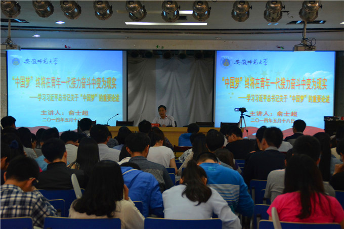 大会开始,由校关工委素质教育报告团成员俞士超老师为现场全体国旅团学骨干作《“中国梦”终将在青年一代接力奋斗中变为现实——学习习近平总书记关于“中国梦”的重要论述》的主题报告。俞老师从中国近代的屈辱历史开始论述,强烈激发了同学们的爱国热情,告诫同学们没有梦想的人生是黯淡的人生的道理;紧接着提出“中国梦的未来属于青年一代”的观点,点明青年人有思想、有智慧、有力量的实际情况,呼吁在座团学青年要敢于有梦、勤于圆梦。最后,俞老师指出要打造青年“梦之队”必须坚持习近平总书记的的“五个要”,即“要坚定理想信念”、“要练就过硬本领”、“要珍惜大学时光”、“要学会创新创造”、“要锤炼道德品质”。此外,俞老师还和同学们分享了自己的人生箴言:“健康”、“自尊”、“快乐”;短短数字,却包含了俞老师作为老领导、老前辈、老学长,对学院莘莘学子的殷切希望和由衷期盼。