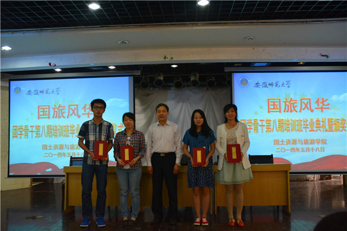 在此次会议中,院团委书记张鑫老师总结了俞士超老师的讲话,介绍了国旅风华团学骨干培训班的背景意义,肯定了培训班所取得的成绩,同时对所有团学骨干提出了三点希望和要求:一是要深刻认识团学工作的重要意义;二是要有勤于学习的习惯、勇于实践的品格、植根群众的作风、敢于创新的锐气;三是要把理论学习与实际工作结合起来。最后,张鑫宣读了《国旅学院关于表彰2013-2014学年团学优秀部门、先进个人的决定》,并请俞士超老师为获奖同学颁奖。
