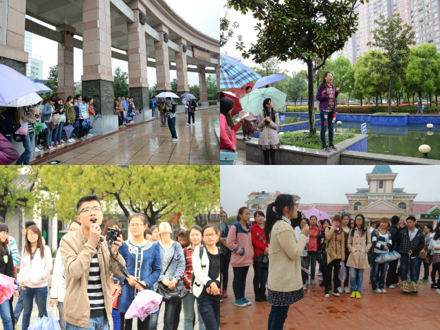 4月12日,实习如期进行,伴着零星小雨,大家第一站来到了芜湖市鸠兹广场,感知城市街区,城市建设与旅游的关系。随后,同学们分别到达第二站:滨江公园、第三站:赭山公园、第四站:雕塑公园和第五站:方特二期。伴随着专业教师的讲解和6位已取得导游证同学的全程解读,全体同学在参观水利风景区、亲水平台、海关,赭山风景区、雕塑作品、主题公园的同时,对以长江水资源为依托,赭山资源为背景,雕塑文化为主体的公园规划、建设以及艺术文化与旅游的密切关系有了深切的感知。