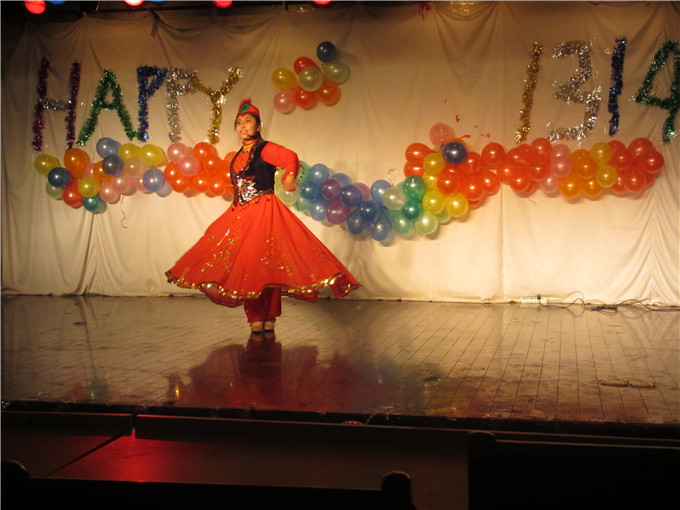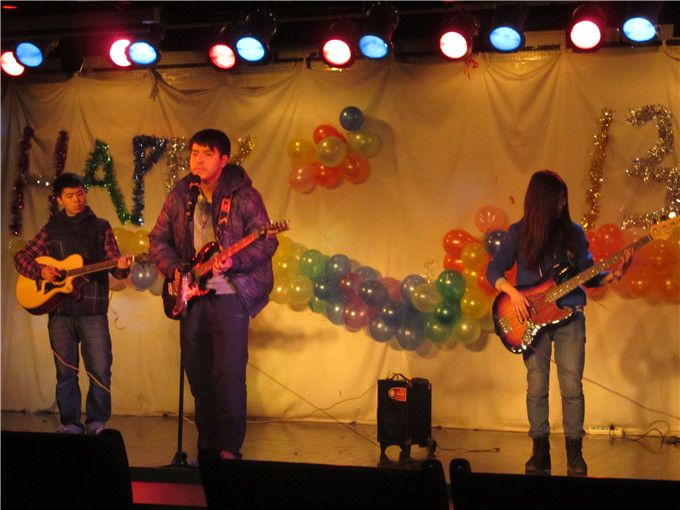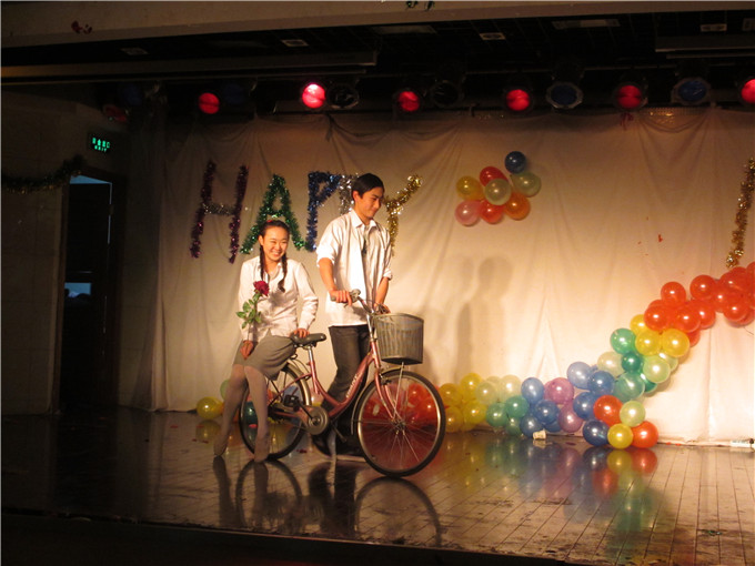 13级旅游管理专业辅导员吴辉老师还带领他的学生表演了一支动人的双人舞蹈《山楂树之恋》,低声轻柔的吟唱,优雅美丽的舞步,使国旅学子们在这腊月的寒冬感受到青春的活力四射。整场晚会高潮不断,踩气球、成语接龙等小游戏的穿插使得欢乐的激情贯穿始终,给每个人都留下了深刻而美好的记忆。