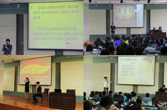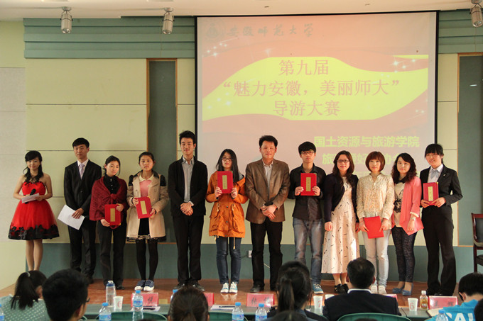 为响应学校“美丽校园”建设,丰富在校大学生文化生活,拓展专业技能,4月13日,由国旅学院团委主办,旅游爱好者协会承办的第九届“魅力安徽,美丽师大”导游大赛决赛于学院实验楼101教室成功举办。学院党委副书记罗振,旅游系王莉、张伟、吴悦等专业老师莅临赛场,并担任主评委。